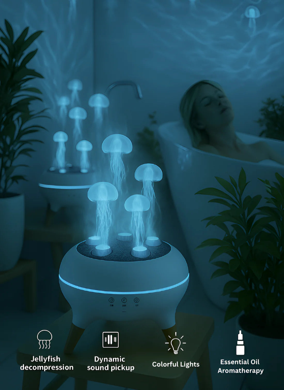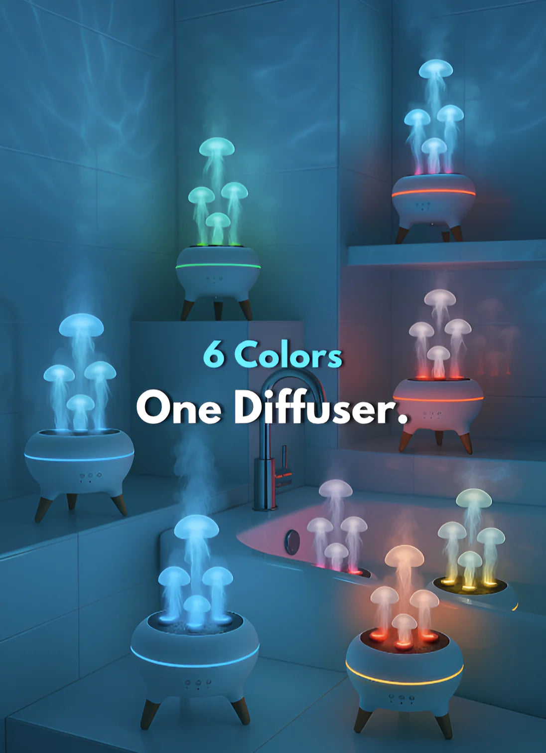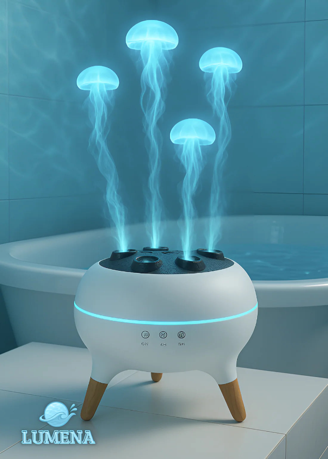 Il Jelly Drift funziona completamente senza fili. Una volta caricato, riempi il Diffusore con acqua, aggiungi qualche goccia della tua fragranza preferita e guarda le Meduse prendere vita!
